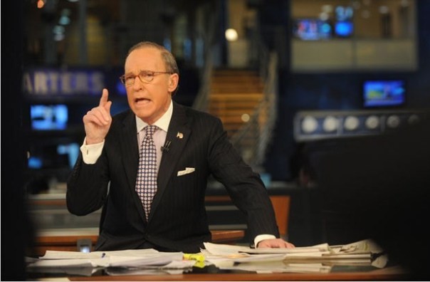 Reception was pretty blah on Wall Street as it wrapped up: the Dow ended the speech where it started, down about 80 puntos. However, the reaction was more positive than expected from curmudgeonly Kudlow. (Have to ask: does he own a non-boardroom white collar shirt?)