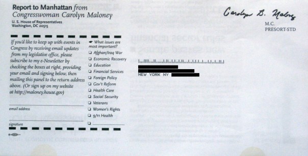 Of late, I’ve taken to reading the updates and flyers from the elected (and aspiring) officials in my neighborhood with more attention. For many people, these Albany updates, Congressional newsletters, and glossy direct mail pieces are the most political contact they have, if they do not actively seek out information about their local politicians.