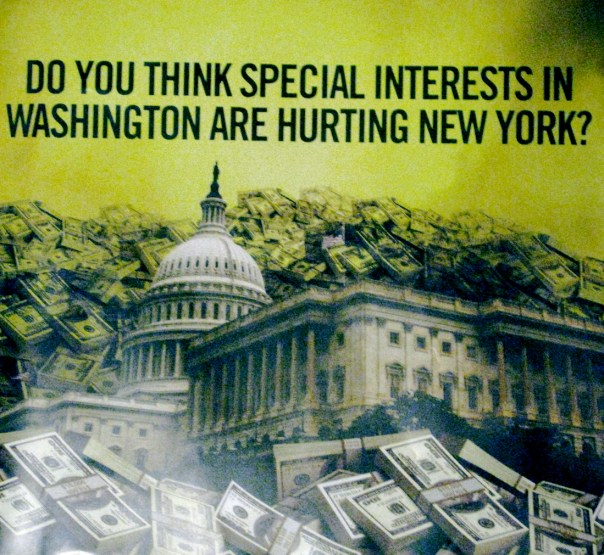 Also, there is further cognitive dissonance to the statement “Do you think special interests in Washington are hurting New York?” I love New York City and I love New York. But, when I think of “special interests,” the corporate bastions of power based here, in addition to the insurance lobby, Big Tobacco, Big Oil, and Hollywood, do tend to come to mind. I know Saujani is trying to say that the money is hurting average New Yorkers (and I’m not sure such a thing exists by the way), but many of those wads of cash make their way from Manhattan to the Beltway.