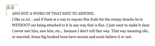 He had the material and the emails Sterger and he had exchanged which was everything he needed, save her permission. Sterger was inching closer to revealing all in her name, but was not quite there yet when Daulerio just made his own decision. Her last note to him was that she might agree, but that her Blackberry was on the fritz. He ended up deciding to “shrug off his obligations to his source” because he then ran the story against her wishes.