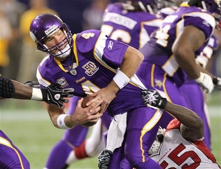 Favre is of course a 41-year-old married grandfather who now plays for the Minnesota Vikings as part of his league-wide “Refuse to Retire” tour. He’s been pretty boneheaded in his handling of this, such as when he spoke to the NFL Network’s Steve Mariucci last week. He said that “the whole scandal has been ‘Not that difficult’ ” and went on to say that what has been difficult is that the Vikings are 3-5. Really? Infidelity and sexual harassment allegations are not that difficult? I’m sure your wife took comfort hearing that, especially since this is probably merely the only time you’ve been caught. Favre has also called the matter a “league issue.” I think it’s actually “your issue,” slick. Man, he really is just an old jock.