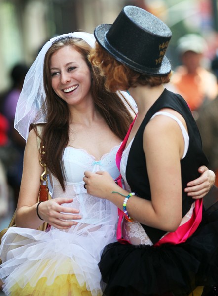 And yet, I haven’t been invited to any gay weddings or gotten any save-the-dates so far. This is debilitating news because 1) they will be good parties, 2) I imagine they will be “the thing” to be at this summer, and 3) it’s common knowledge in New York that gay men maintain a deep bench of adorable girl friends. (And the gay male endorsement of the straight male friend may just surpass the parental stamp of approval these days.)